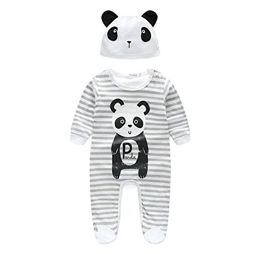 Tonsee ベビー ロンパース 男の子 可愛い カートゥーン ジャンプスーツ+帽子 セット お着替え簡単 出産祝い (70, ホワイト)