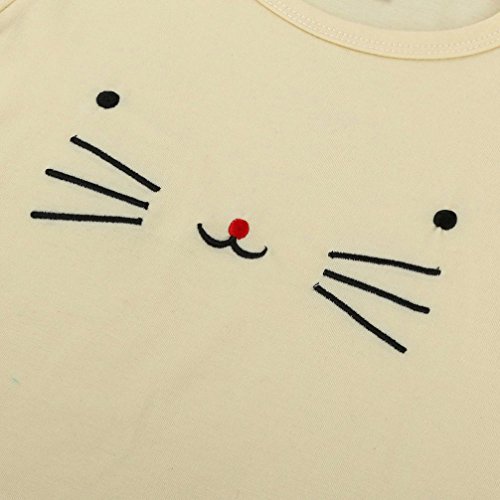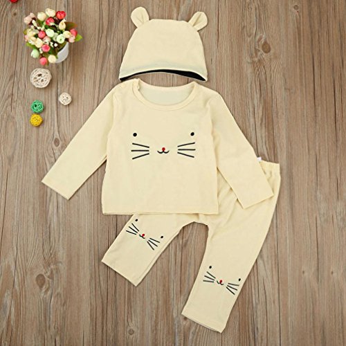 Tonsee ベビー 可愛い ネコ パターン長袖 トップス+パンツ+帽子 3点セット 赤ちゃん パジャマ お着替え簡単 出産祝い (80, ベージュ)