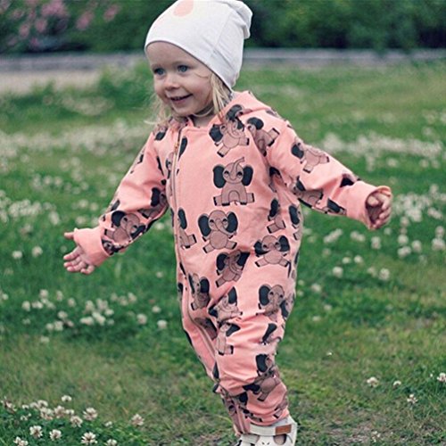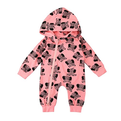 Tonsee ベビー ロンパース 可愛い 象 カバーオール 赤ちゃん オーバーオール フード付き ジャンプスーツ (100)