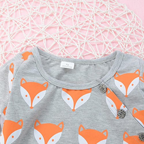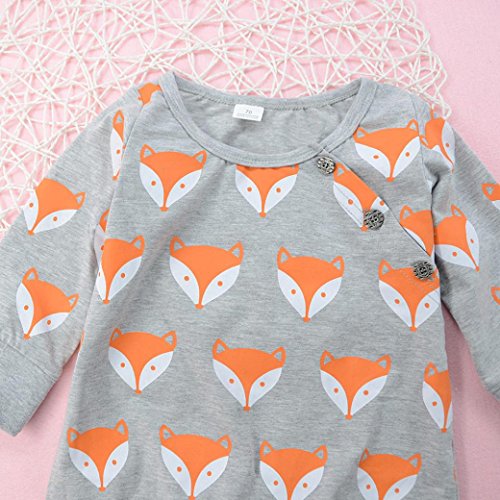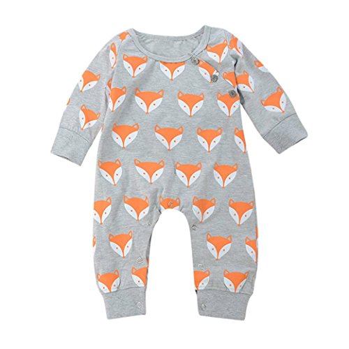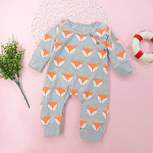 Tonsee ベビー服 ロンパース 赤ちゃん服 女の子 男の子 ジャンプスーツ カバーオール キツネ パターン 子供服 パジャマ 満月/出産祝い/プレゼント 6ヶ月-24ヶ月 (70)