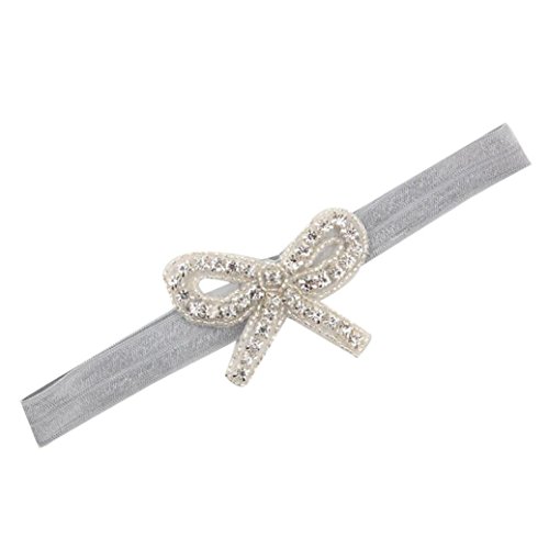 Tonsee ベビー 可愛い ヘッドバンド ラインストーン ちょう結び 髪飾り ストレッチ ヘアバンド (グレー)