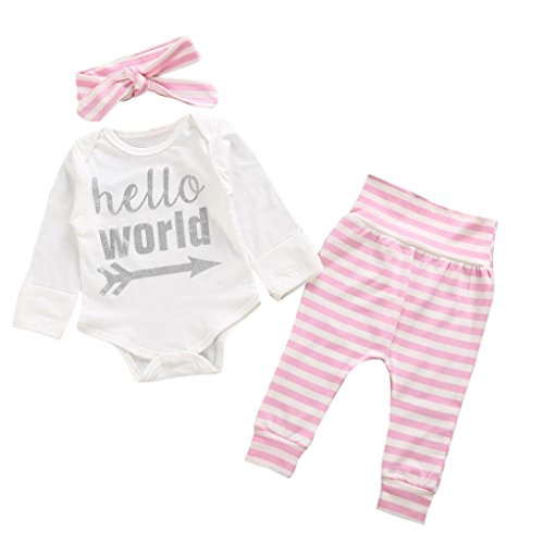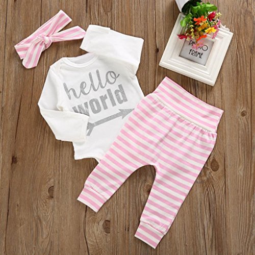 Tonsee ベビー ガールズ 可愛い レター プリント トップス+パンツ+ヘッドバンド 3点セット 赤ちゃん 子供服 (70)