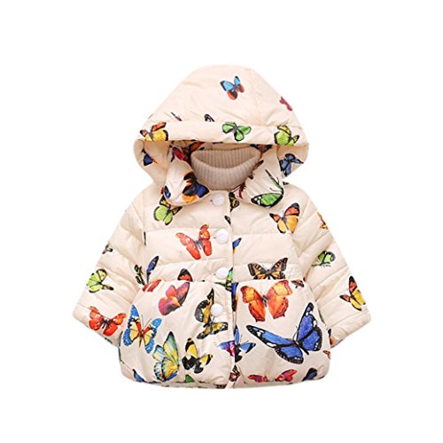 Tonsee ベビー服 子供服 女の子 コート 長袖 厚手 フード付き 秋冬 ジャケット 防寒 アウター 上着 バタフライ パターン 赤ちゃん服 普段着 プレゼント 80-110CM (80, ベージュ)