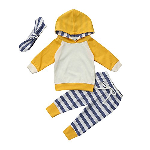 Tonsee ベビー服 3点セット イエロー パーカー+パンツ+ヘッドバンド 子供服 長袖 トレーナー 女の子 男の子 赤ちゃん服 キッズ服 満月/出産祝い/プレゼント 3-24ヶ月 (80)