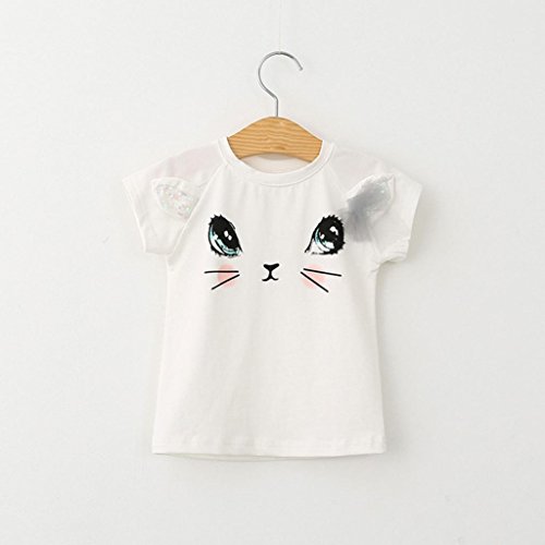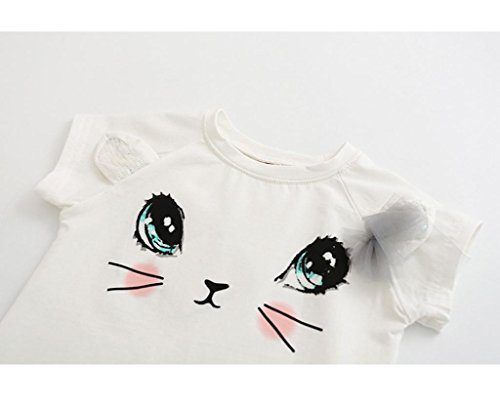 Tonsee ガールズ スカートセット 可愛い ネコ パターン 半袖 ベストトップ+スカート 2点セット (100)