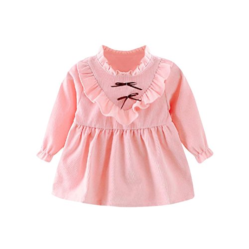 Tonsee ベビー ガールズ ワンピース 可愛い 長袖 プリンセスドレス フォーマル 子供服 結婚式 発表会 (80, ピンク)