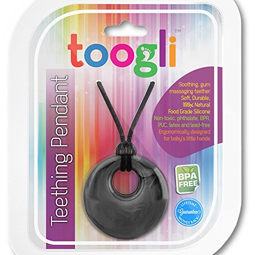 Stylish jewelry for you and a satisfying teether for your baby's sore, irritated gums. Just like your regular jewelry, your baby will grab this teether right away, making it the perfect nursing necklace.;Great for travel or just running errands, this teething pendant replaces the need for other teething toys and is the perfect way to keep your little one busy and calm while in your arms.;As a special bonus, you'll receive the Toogli Teething Survival Guide ebook and a free extra set of clasps just in case your baby is active enough to wear the original set out.;The Toogli teething pendant comes with 7 day/week customer service and Toogli's industry leading no-hassle, better than money back, lifetime guarantee - if you ever decide you are not completely satisfied, we'll refund your money immediately, no questions asked and we'll even cover the return shipping.
