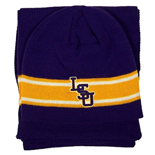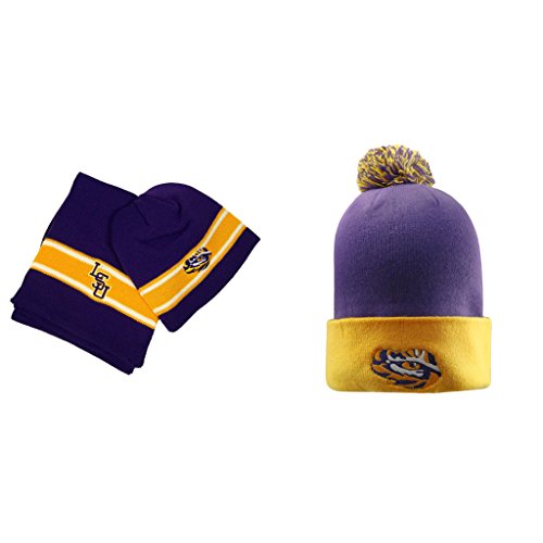 NCAA LSU Tigers EZ帽子スカーフコンボとポンポン付きニット帽2パックバンドル