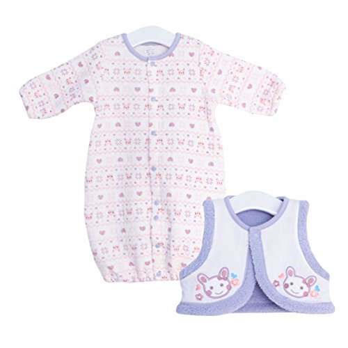 TopCotton ベビー ロンパース + ベスト 2点セット ツーウェイオール 子供服 女の子 3色選べる 出産祝い (50-70cm) (パープル)