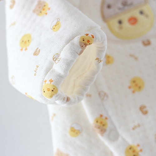 - 前開きの一枚カバーオールなのでお着替え簡単!弾力のある袖口はベビーの手を保護し、寒い風邪を入らないようにします。