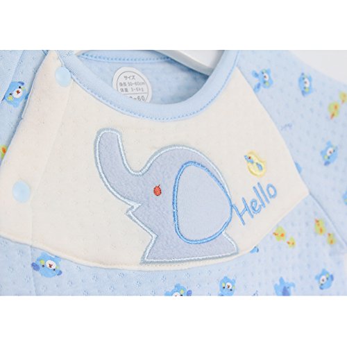 TopCotton 新生児服 長袖 ロンパース カバーオール 50-60CM(0-3ヶ月) (ブルー)
