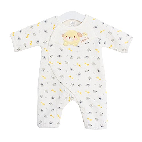 - 前開きの一枚カバーオールなのでお着替え簡単!弾力のある袖口はベビーの手を保護し、寒い風邪を入らないようにします。