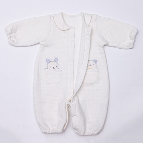 - 前開きの一枚カバーオールなのでお着替え簡単!弾力のある袖口はベビーの手を保護し、寒い風邪を入らないようにします。
