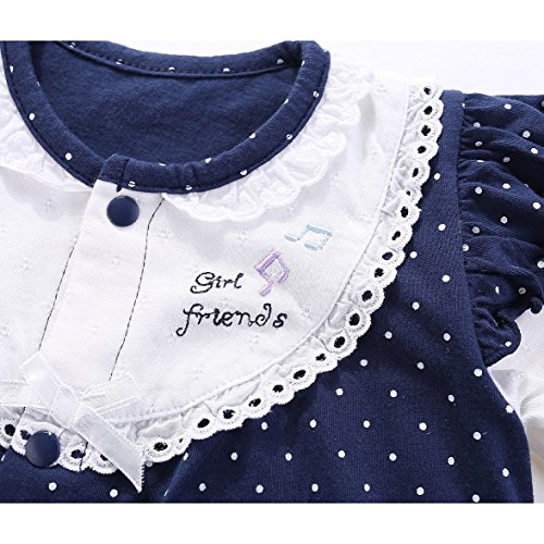- ドット柄は派手で活発であり、胸元に真っ白なレースがあり、ちょうちんスカートのデザインによって、赤ちゃんはプリンセスのように可愛くなり、濃い青と薄灰の2色がオプションできます。