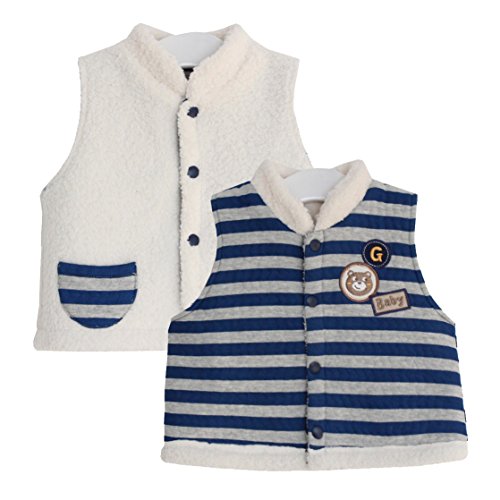 TopCotton ベビー ベスト ストライプ 両面着える 防寒 子供服 新生児 チョッキ (青い, 70)