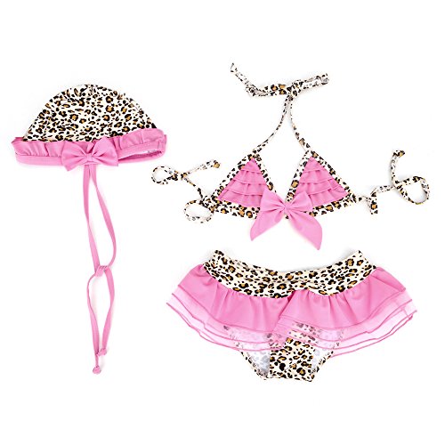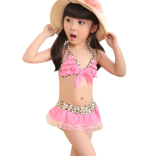 TopTie幼児Girlscm水着、ヒョウアニマルプリントピンクビキニ、ツーピース水着 - ピンク - Size2