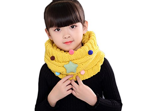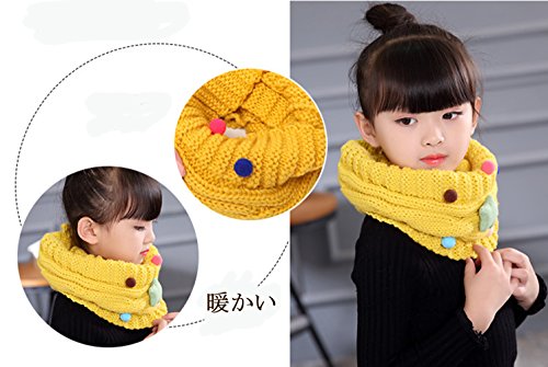 ベビーマフラー 暖かいニットネックウォーマー女の子 可愛いガールススヌード 秋冬 防寒 防風 (イエロー)