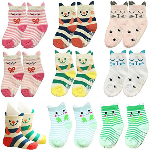 toptim滑り止めベビーソックスGirl、幼児用かわいい猫ソックス8ペア