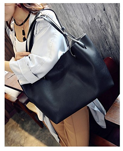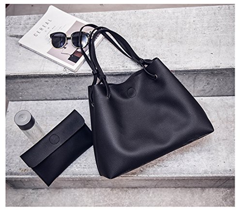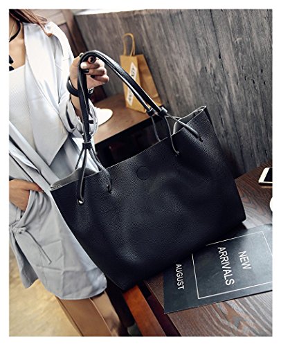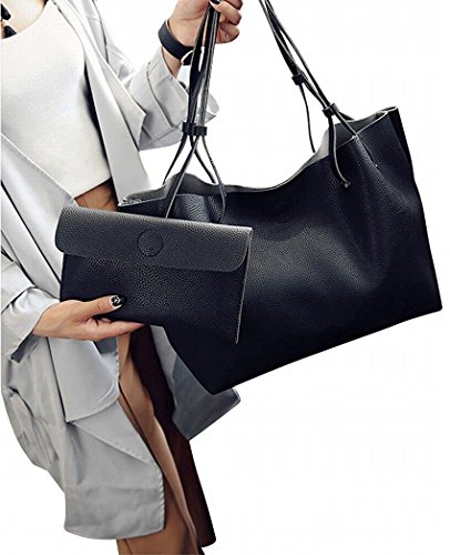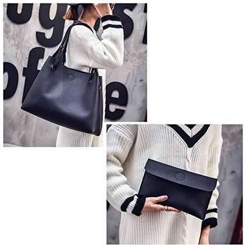 Torisky レディース バッグ レザーバッグ カバン 2つセット OL 通勤 通学 就職活動 旅行 A4 (ブラック)