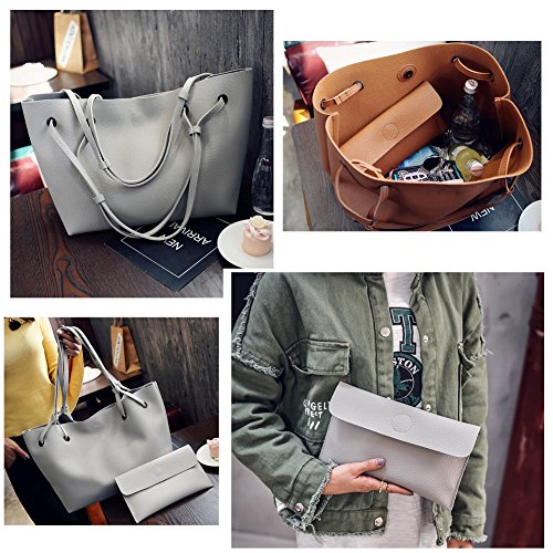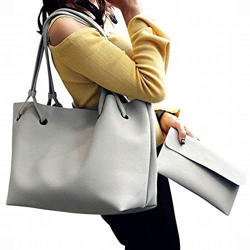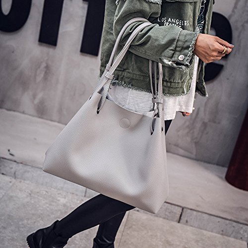 Torisky レディース バッグ レザーバッグ カバン 2つセット OL 通勤 通学 就職活動 旅行 A4 (ライトグレー)