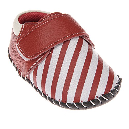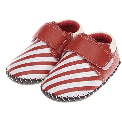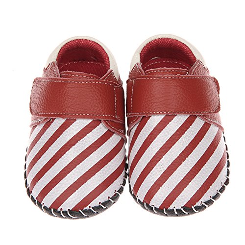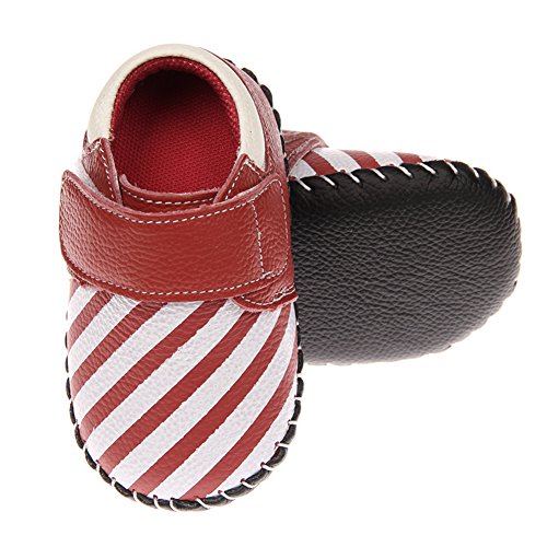 Tortor 1bacha(JP) ベビーシューズ ファーストシューズ ベビー 女の子 たて縞 本革 赤ちゃん 柔らかい靴底 ベビー靴 歩行練習 出産祝い プレゼント 赤 白 11.5-13.5cm