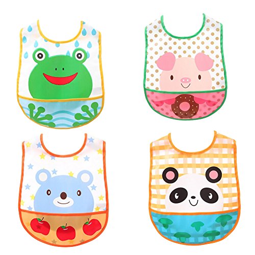 Tortor 1bacha(JP) 男女兼用 よだれかけ ベビー 防水 赤ちゃん 4枚セット 食事用 涎 新生児 出産祝い 離乳食 ビブ スタイ キッズ 男の子 女の子 付けて可愛い 誕生日プレゼント 熊 蛙 (男児)