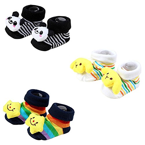 Tortor 1bacha(JP) 靴下 ベビー ベビー靴下 赤ちゃん キッズ キッズ靴下 ソックス 滑り止め付きカジュアル 出産祝い くつ下 可愛い 星 犬 パンダ 3足セット 6足セット (M, 5)