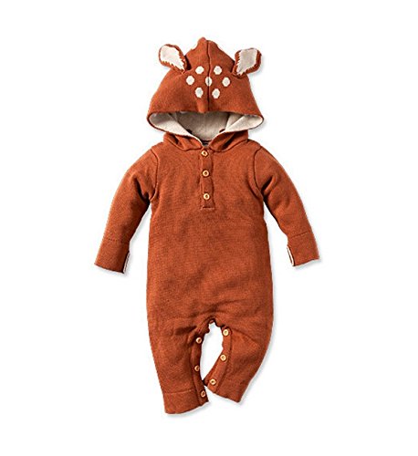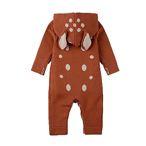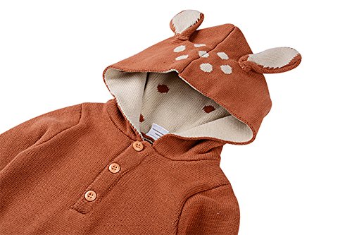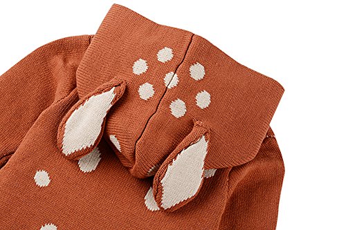 Tortor 1bacha(JP) 男女兼用 子供服 カバーオール 女の子 秋冬 ロンパース ベビー ニット編み キッズ 男の子 長袖 フード付き 赤ちゃん 出産祝い クリスマス 女児 可愛い 綿100% グレー 鹿 兎 70 80 90 (70, コーヒー色)