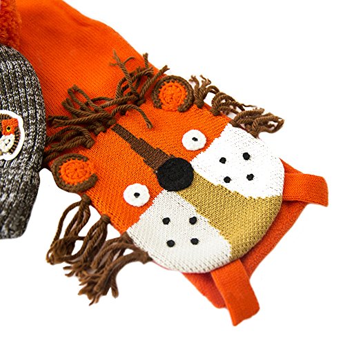 Tortor 1bacha(JP) 男女兼用 ベビー帽子 ニット帽子+マフラー+ミトン 3点セット 子供帽子 キッズ 男の子 女の子 秋冬 赤ちゃん ポンポンつき 防寒 1-6歳 出産祝い グレー 通学 クリスマス