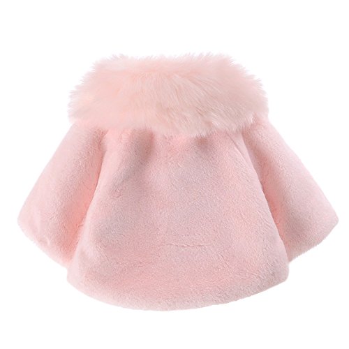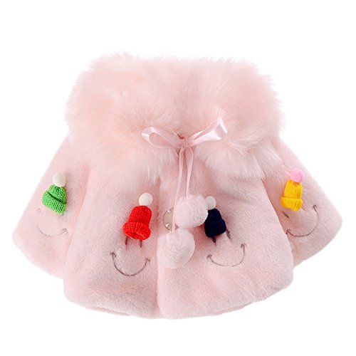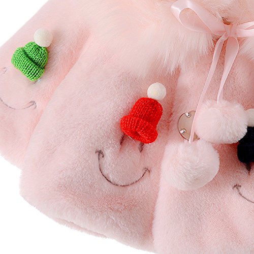Tortor 1bacha(JP) ベビー服 女の子 フェイクファー コート ふわふわ ポンポン リボン ストール マント 赤ちゃん服 笑顔 ガールズ フォーマル服 秋冬 通園 通学 結婚式 パーティー ピンク