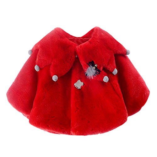 Tortor 1bacha(JP) ベビー服 女の子 コート たこ 大きめの襟 ふわふわ 暖かい ストール マント 赤ちゃん服 ガールズ 秋冬 防寒 通園 結婚式 パーティー レッド