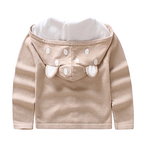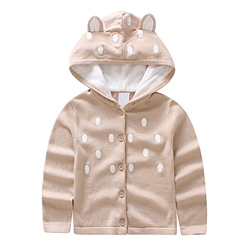 Tortor 1bacha(JP) 子供 ニットカーディガンセーター キッズ ニット編み ベビー服 セーター 女の子 長袖 秋もの ガールズ 水玉 女児 ピンク 可愛い 体温調節 フード付 綿95% 80 90 100 (100, ベージュ)