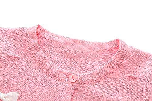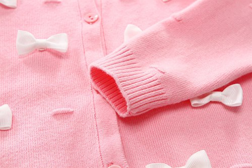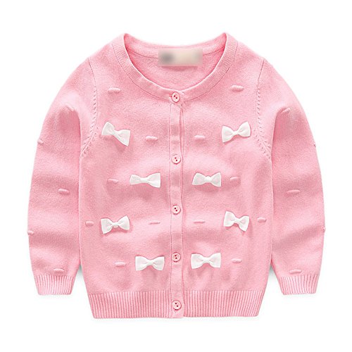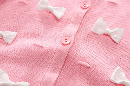 Tortor 1bacha(JP) 子供 ニットカーディガン/セーター キッズ ニット編み ベビー服 セーター 女の子 長袖 秋もの ガールズ 女児 ピンク グレー 可愛い 蝶飾り 体温調節 綿95% 90 100 (105, ピンク)