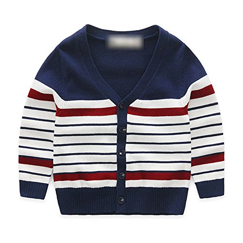 Tortor 1bacha(JP) 子供 ニットカーディガン/セーター キッズ ニット編み vネック ベビー服 セーター 男の子 長袖 秋冬 ストライプ ボーイズ 可愛い 体温調節 綿95% 90 100 赤 ネイビー (95, ネイビー)