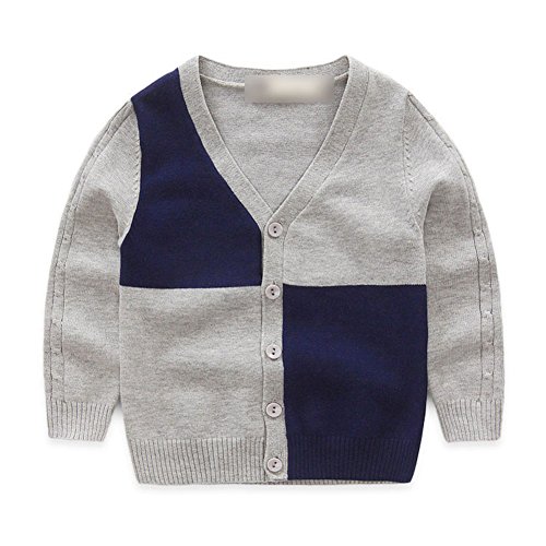 Tortor 1bacha(JP) 子供 ニットカーディガン ニットセーター キッズ ニット編み ベビー服 セーター 男の子 長袖 秋もの ボーイズ 男児 可愛い vネック 体温調節 綿95% グレー 90 100 (90, グレー)