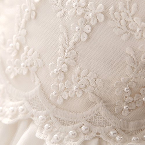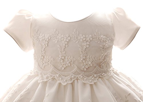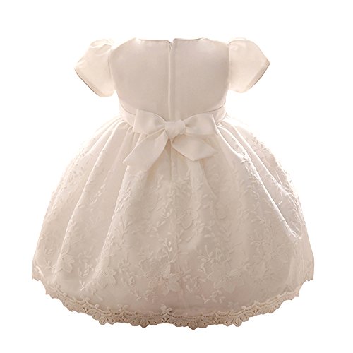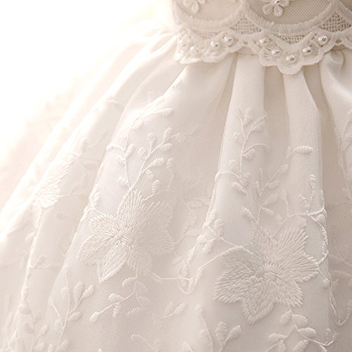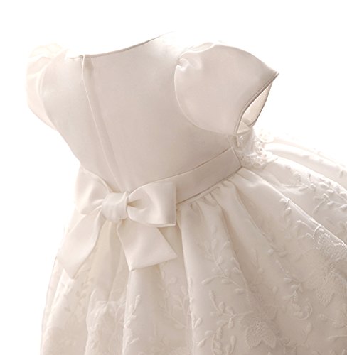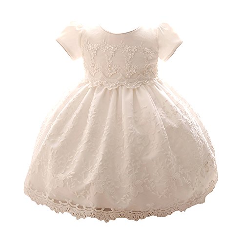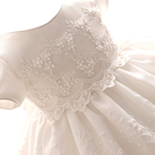 Tortor 1bacha(JP) キッズドレス 女児 ベビー アップリアスカート 新生児 女の子 0-2歳 プリンセス 赤ちゃん ビーズ フォーマルワンピース 出産祝い 半袖 結婚式 リボン 可愛い プレゼント 白色 通気 (90)