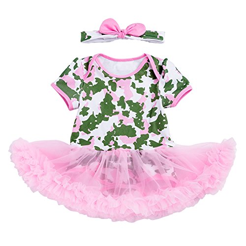 Tortor 1bacha(JP) ベビードレス 赤ちゃん 女の子 蝶結び ヘアバンド ワンピース 半袖 カモフラ キッズドレス チュールドレス ガールズ 綿 出産祝い 誕生日 記念写真 結婚式 プレゼント