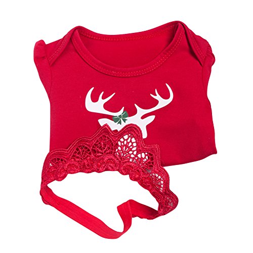 Tortor 1bacha(JP) ベビードレス 赤ちゃん 女の子 可愛い 鹿 ワンピース 半袖 子供ドレス レース ヘアバンド付き キッズドレス ガールズ 綿 出産祝い 誕生日 記念写真 結婚式 プレゼント レッド