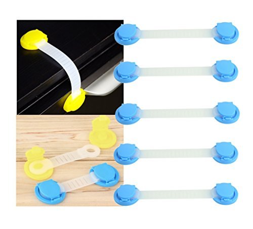 - Toddler Child Home Safety Adhesive Cabinet Shelf Refrigerator Drawer Door Strap Lock, Blue 5 pcs