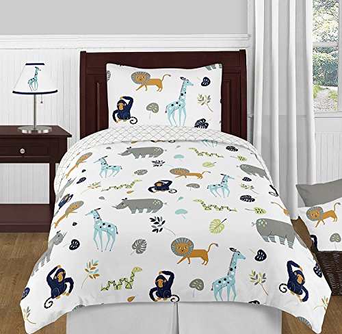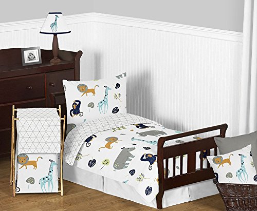 Sweet Jojo Designs Turquoise and Navy Blue Safari Animal Baby Kid Clothes Laundry Hamper for Mod Jungle Collection by [並行輸入品]