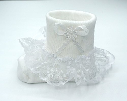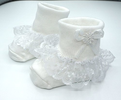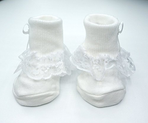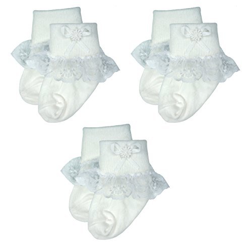 Liwely 3 Pairs Baby Girls White Lace Trim Socks Turn Cuff Lace Socks with Bows for 9 - 24 Months Toddlers [並行輸入品]