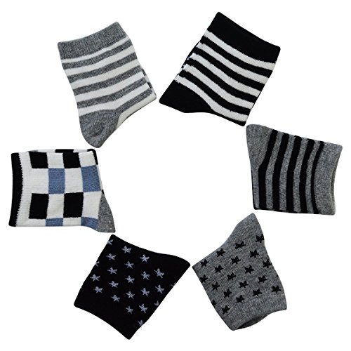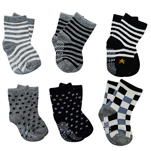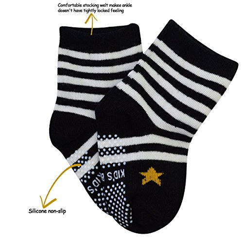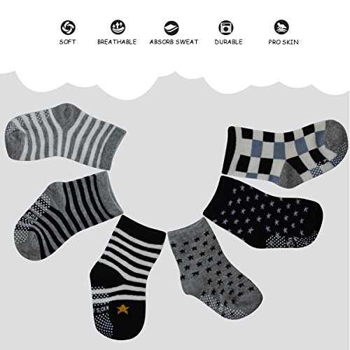 6 Pairs Assorted Anti Slip Ankle Cotton Socks with Grip Baby Toddler Non-skid Cotton Stretch Knit Stripes Star Non Slip Socks Slippers for 12-36 Months Boys Girls Infant Kids [並行輸入品]