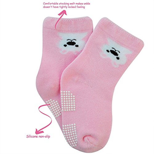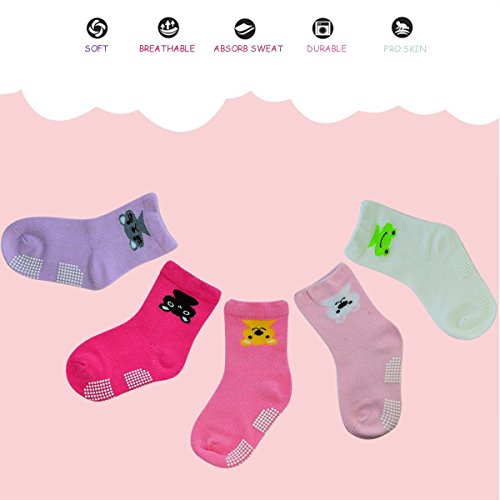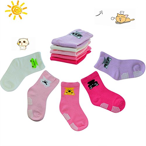 5 Pairs Baby Girl Anti-Slip Combed Cotton Socks Lystaii Upside Down Cartoon Toddler Walker Non Skid Sneakers Footsocks Shoe Ankle Socks Foot Cover With Grips for 1-3 /12-36 Months Years Baby [並行輸入品]