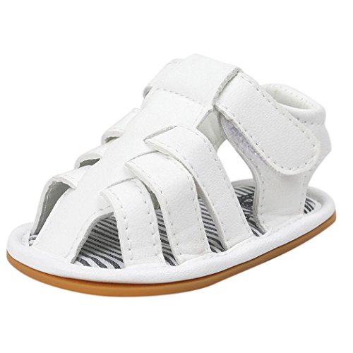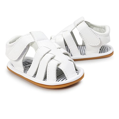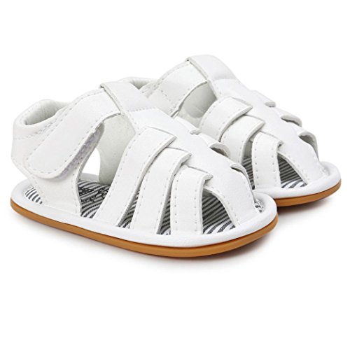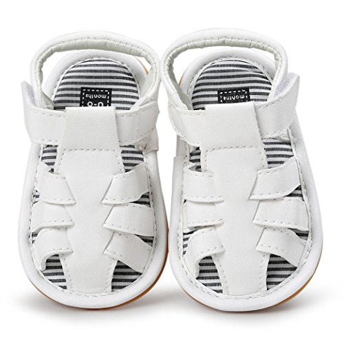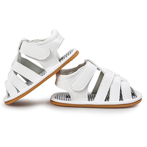 Tovadoo サンダル 子供靴 乳児靴 マジックテープ 縞模様 ベビーシューズ 履きやすい 履き心地良い 滑り止め おしゃれ 可愛い カッコイイ 通園 通学 旅行 シンプル キッズ 11-13CM (11cm, ホワイト)