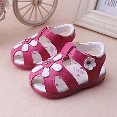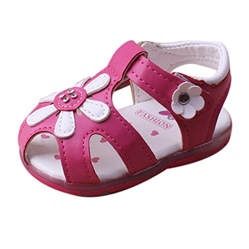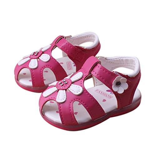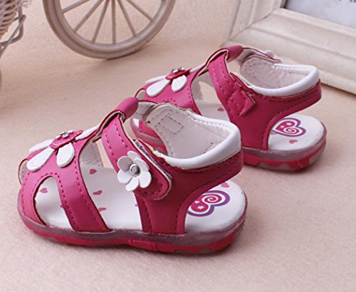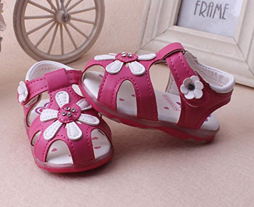 Tovadoo サンダル 子供靴 乳児靴 ベビーシューズ マジックテープ 花飾り PUレザー 滑り止め 履きやすい 履き心地良い 可愛い おしゃれ 通園 通学 遊園地 シンプル カジュアル キッズ 女の子 三色揃い 15-17.5CM (16cm, ローズ)