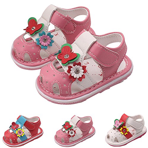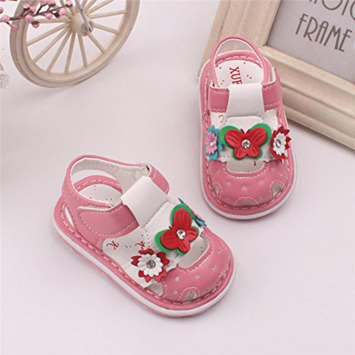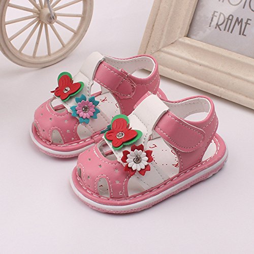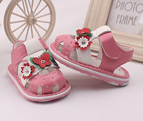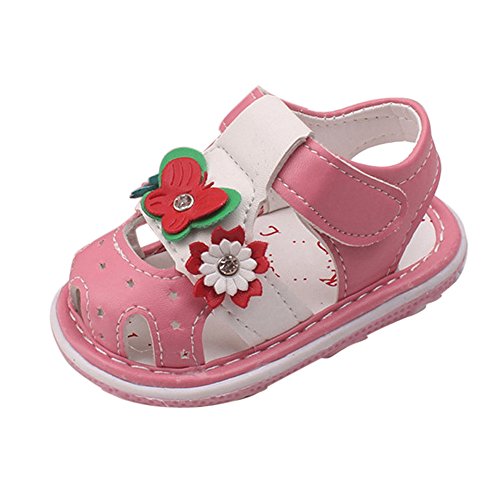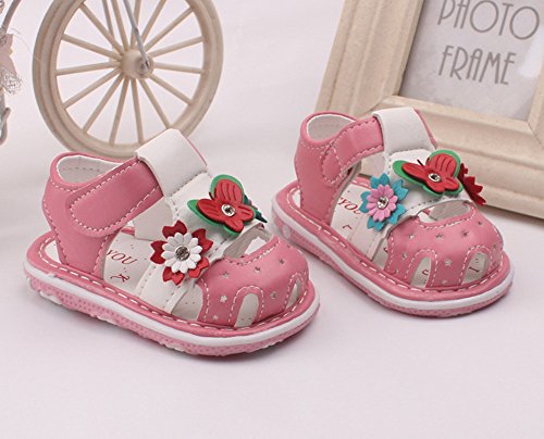 Tovadoo サンダル 子供靴 ベビーシューズ マジックテープ 花飾り 星モチーフ お虎靴裏 PUレザー 滑り止め 履きやすい 履き心地良い 可愛い おしゃれ 通園 通学 遊園地 シンプル カジュアル キッズ 女の子 三色揃い 13-15CM (14.5cm, ピンク)