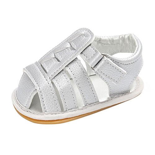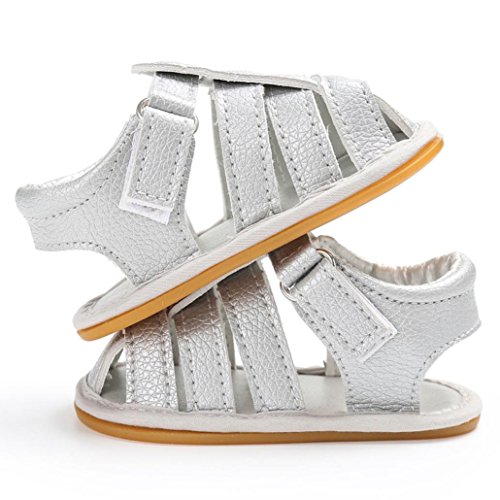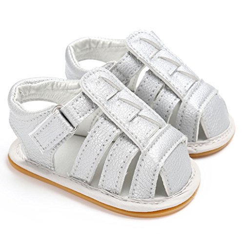 Tovadoo サンダル 子供靴 乳児靴 男女兼用 ベビーシューズ PUレザー マジックテープ 履きやすい 履き心地良い 滑り止め 通気性よく おしゃれ 可愛い カッコイイ 通園 通学 旅行 シンプル カジュアル キッズ 五色揃い 11-13CM (11CM, シルバー)
