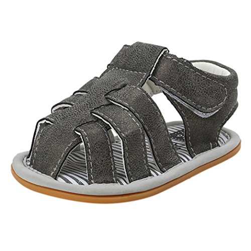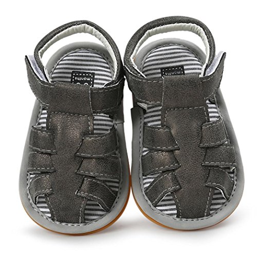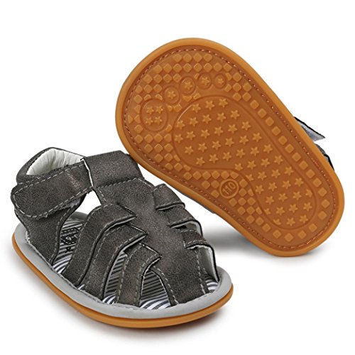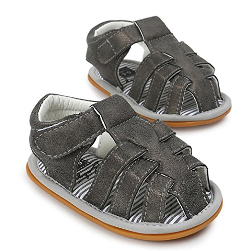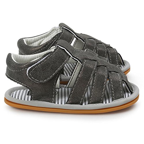 Tovadoo サンダル 子供靴 乳児靴 マジックテープ 縞模様 ベビーシューズ 履きやすい 履き心地良い 滑り止め おしゃれ 可愛い カッコイイ 通園 通学 旅行 シンプル キッズ 11-13CM (11cm, ダークグレー)