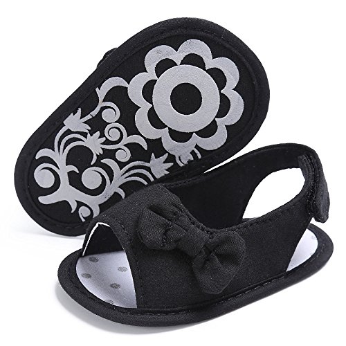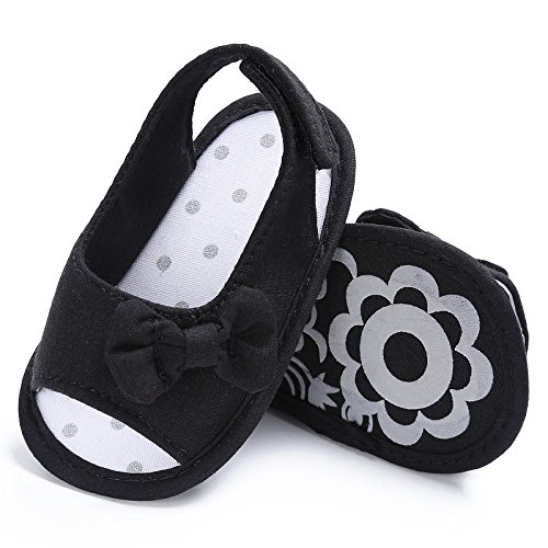 Tovadoo サンダル 子供靴 乳児靴 ベビーシューズ リボン付き 水玉 フラワーモチーフ 履きやすい 履き心地良い おしゃれ 可愛い 通園 通学 旅行 シンプル カジュアル キッズ 五色揃い 11-13CM (11cm, ブラック)