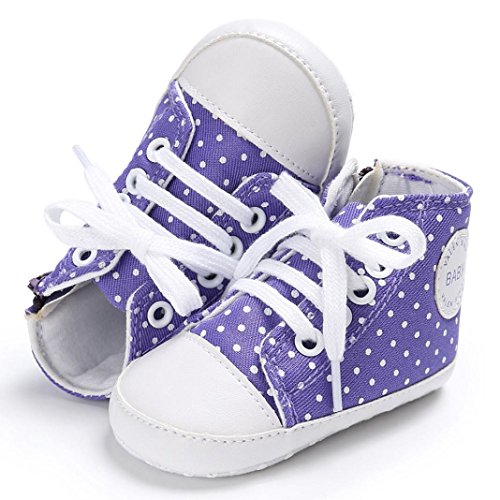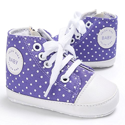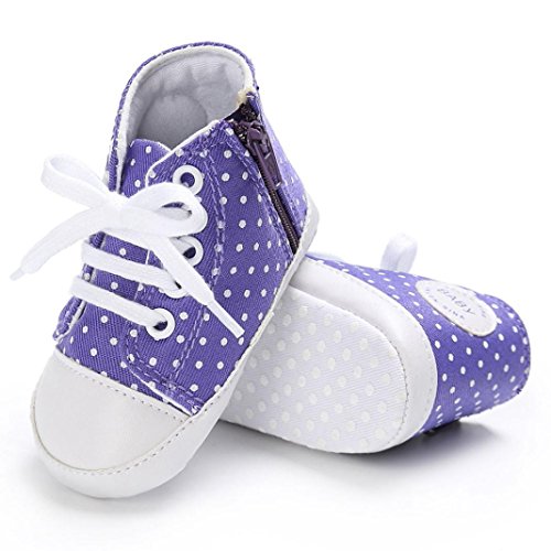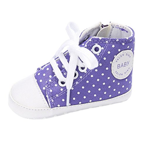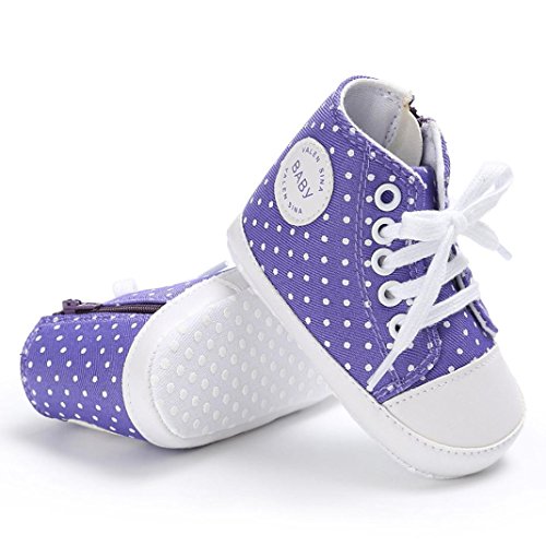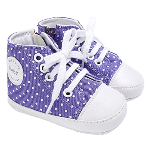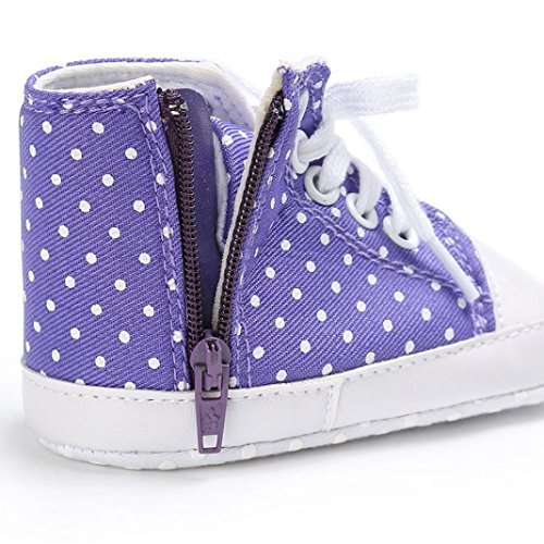 Tovadoo ズック靴 子供靴 乳児靴 ベビーシューズ マジックテープ 水玉 靴ひも コットン 通気性よく 履き心地良い 滑り止め おしゃれ 可愛い 通園 通学 旅行 シンプル カジュアル キッズ 四色揃い 11-13CM (11cm, パープル)